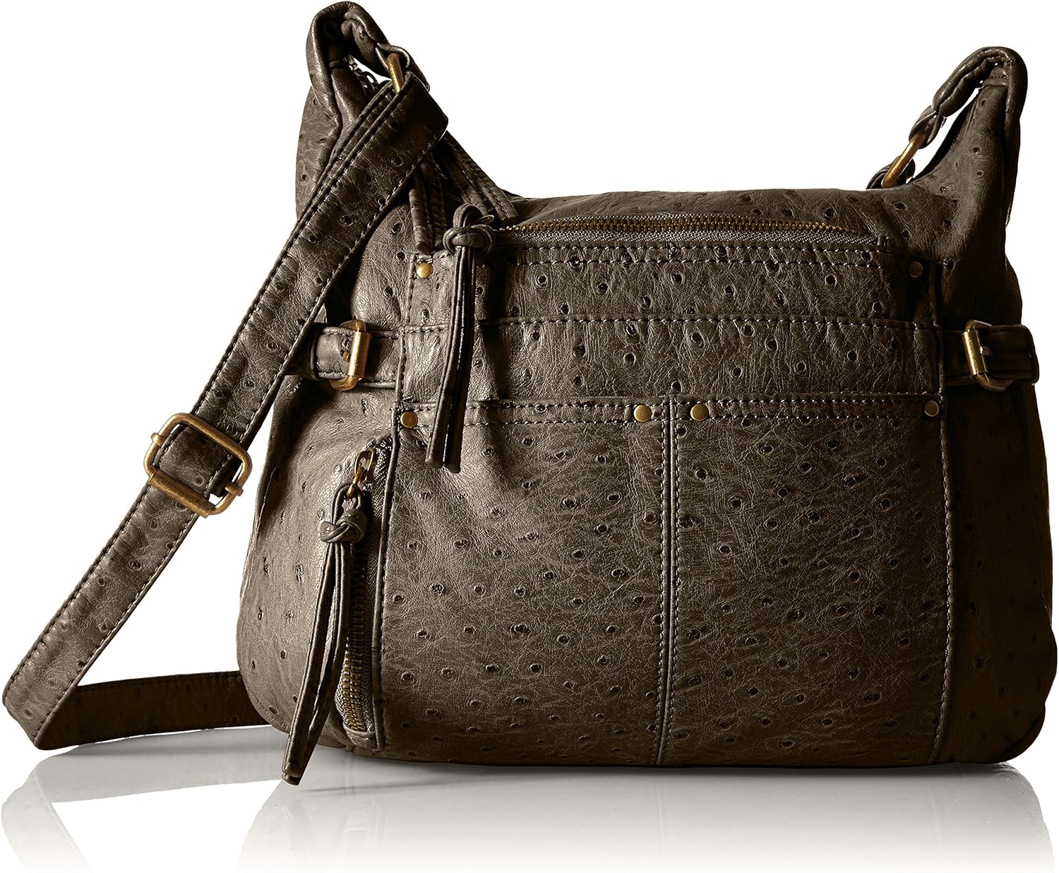 Bueno Brown Embossed Ostrich Handbag bueno ostrich handbags