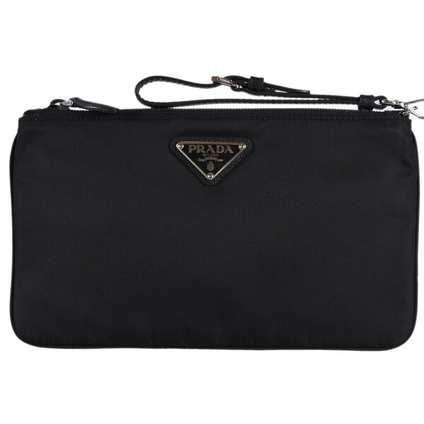 Shop Prada 1NH545 Piatto Maniglia black pouch purse