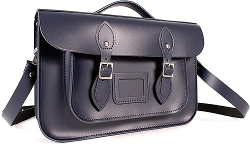 Magnetic Snap Briefcase Leather Satchel navy leather briefcase