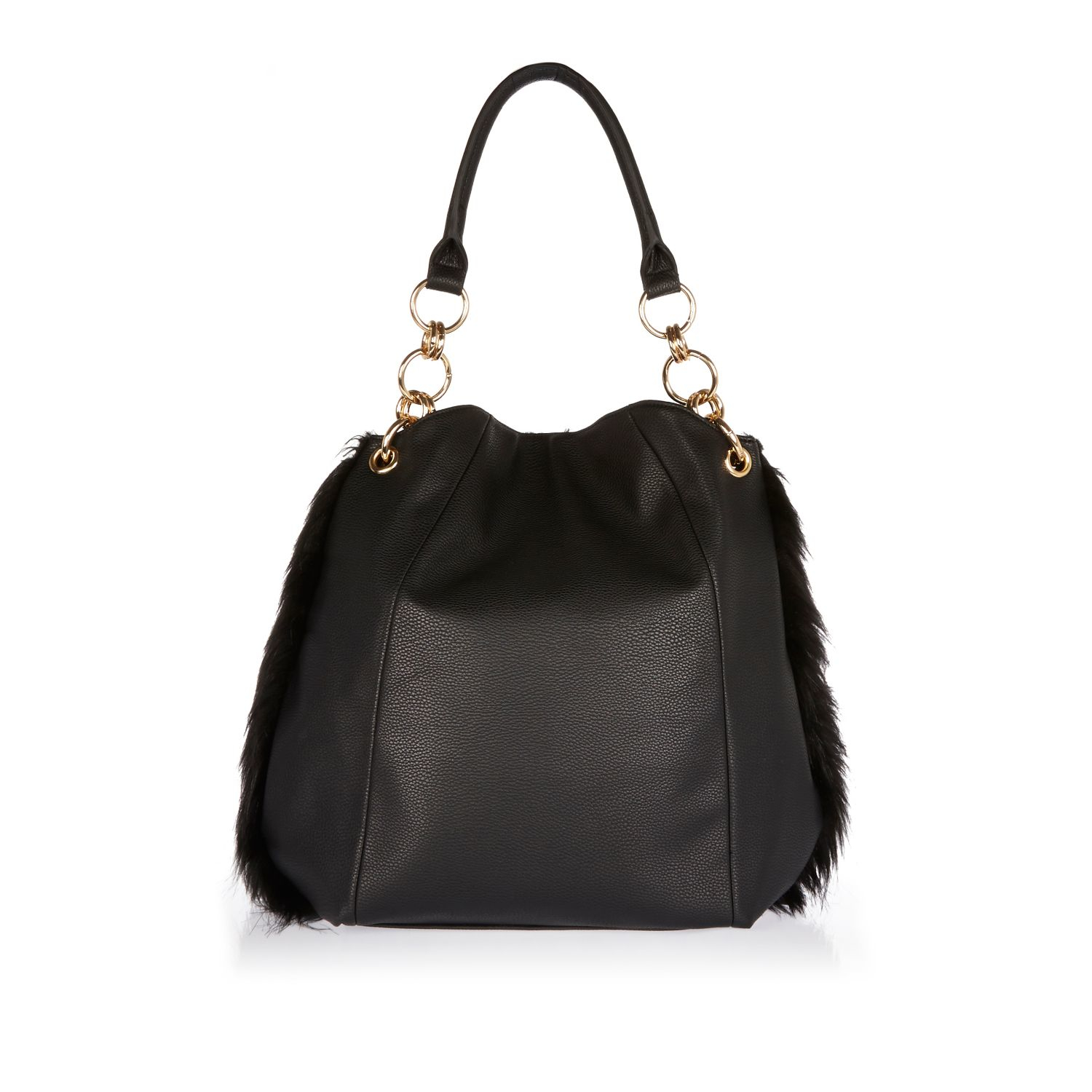 river island black fur bag