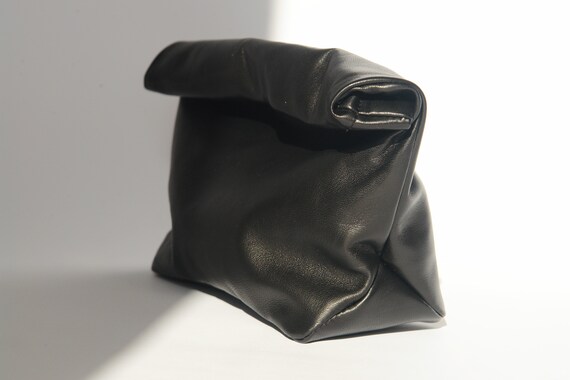 lunch bag clutch Leather folded leather lunch bag purse