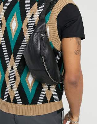 ASOS DESIGN leather cross body fanny black leather bumbag