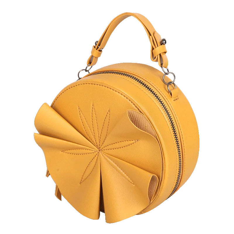 Women's Leather Round Crossbody Bag yellow mini purse