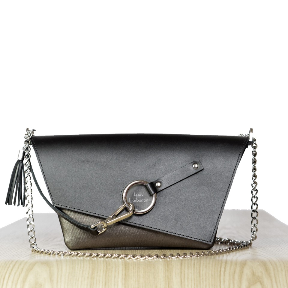 black clutch bag silver chain
