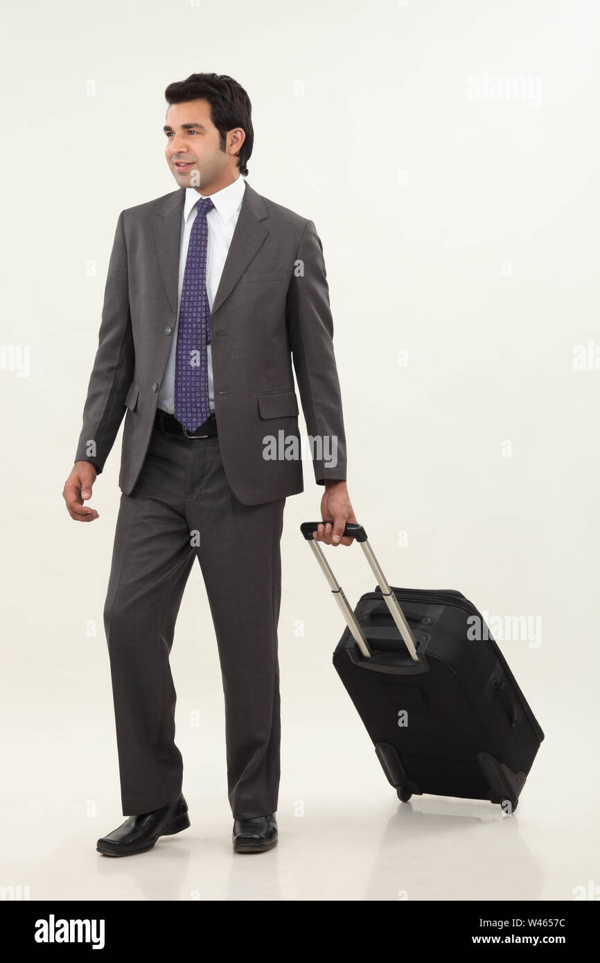 Businessman walking with suitcase Stock businessman suitcase