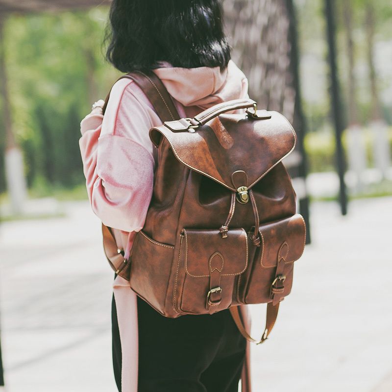 Designer Backpack With Leather Handle large side bags for college