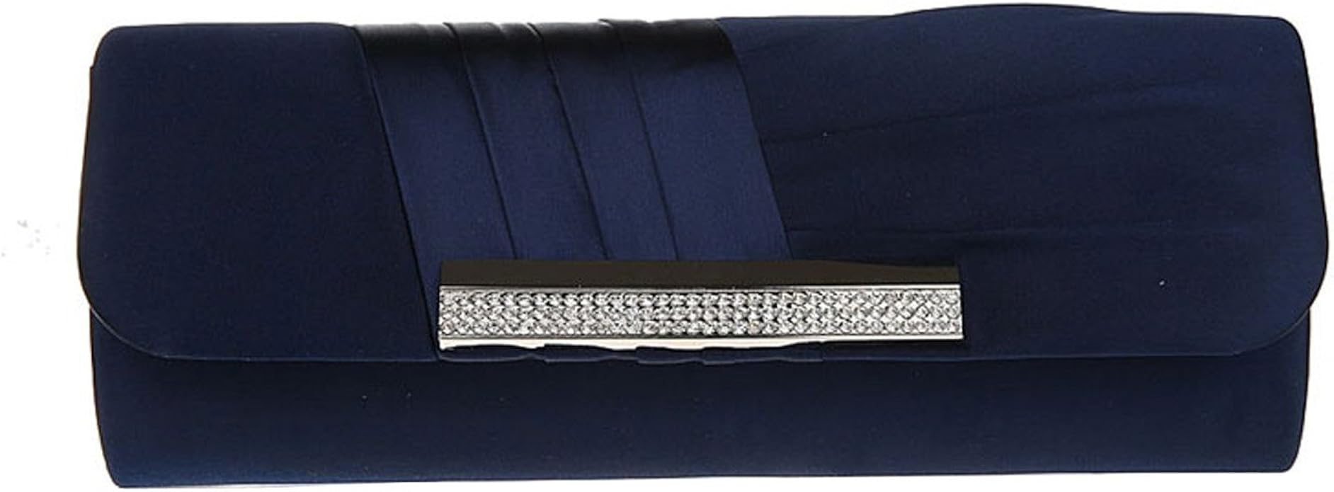 Satin Diamante Pleated Evening Clutch navy and diamante clutch bag