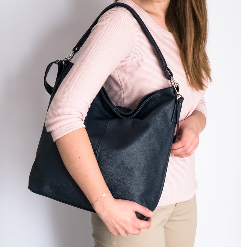 navy blue leather hobo bag