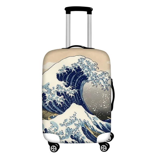 Art Wave Print Luggage Protected Cover sky bag blue white trolley