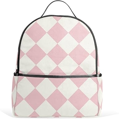 Mr.Weng Pink White Squares Printed printed canvas backpack