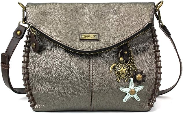 Charming Crossbody Purse in PU Leather pewter purses handbags