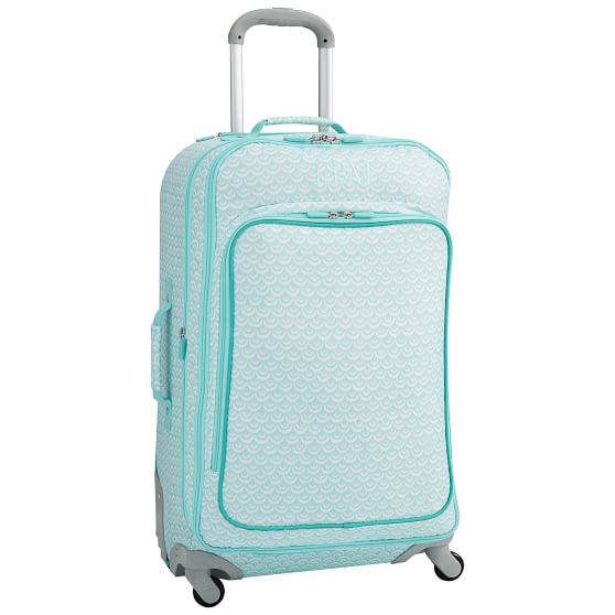 Mermaid Scallop Checked Spinner | Teen mermaid rolling luggage