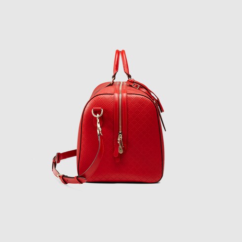 Red bright Diamante leather carry-on gucci red leather duffle bag
