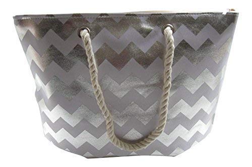 Lorenz Large Cheveron Zizag Patterned large silver beach bag