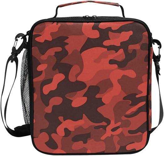 Black Red Camo Pattern Lunch Bag with black and red lunch box