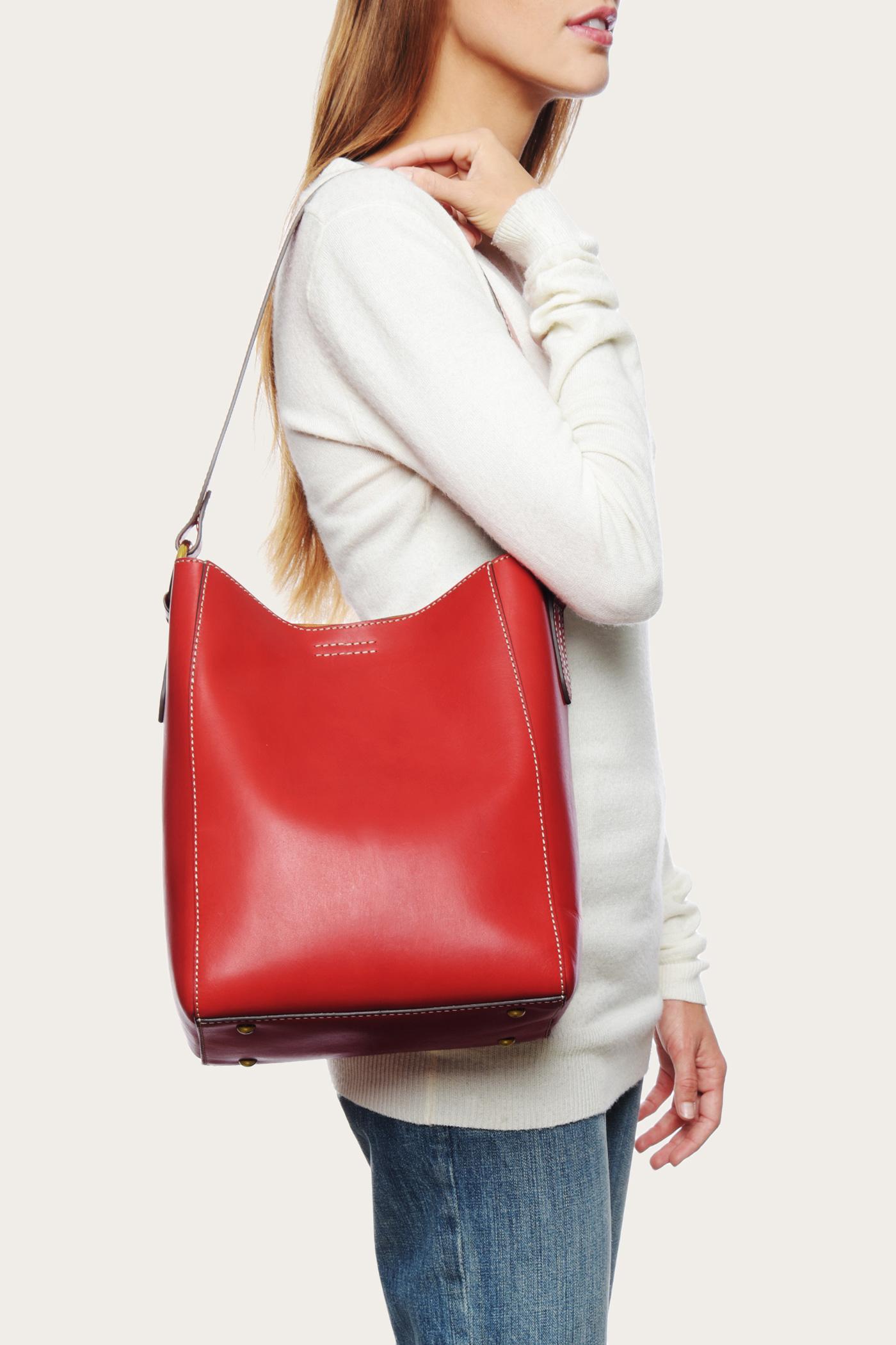 Frye Leather Harness Bucket in Red - Lyst frye harness bucket bag
