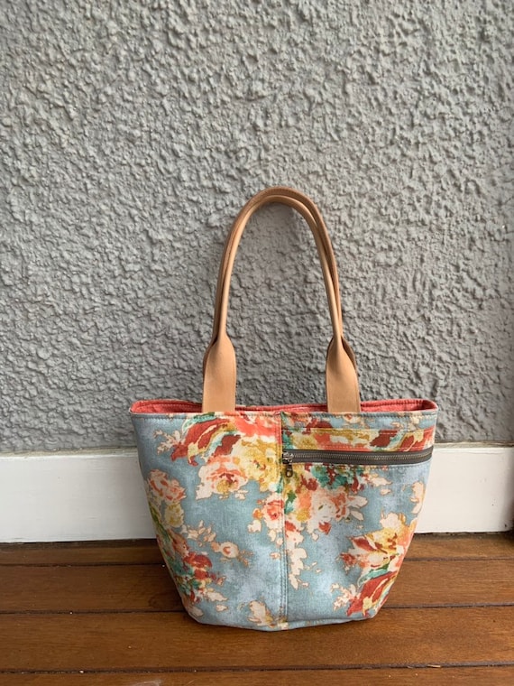 Floral canvas tote bag with leather floral canvas tote bag