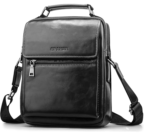SPAHER Mens Genuine Leather Waist Bag travel document shoulder bag