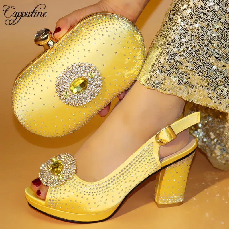 Bag Set Nigerian High Heels Shoes amazon gold shoes and bag