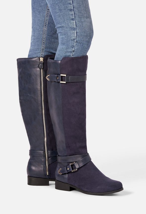 Chaussures Bottes plates Hollie en Bleu marine - Livraison gratuite sur JustFab justfab bottes plates