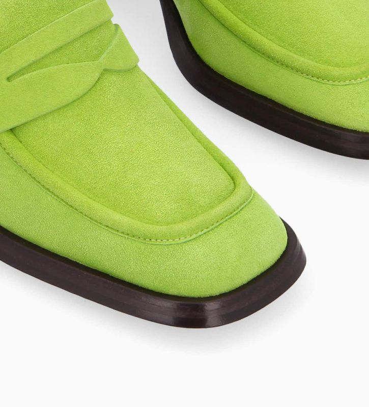 Mocassin à talon à bout carré Anaïs 70 Cuir velours Vert pomme Free Lance pour femme mocassin talon carré