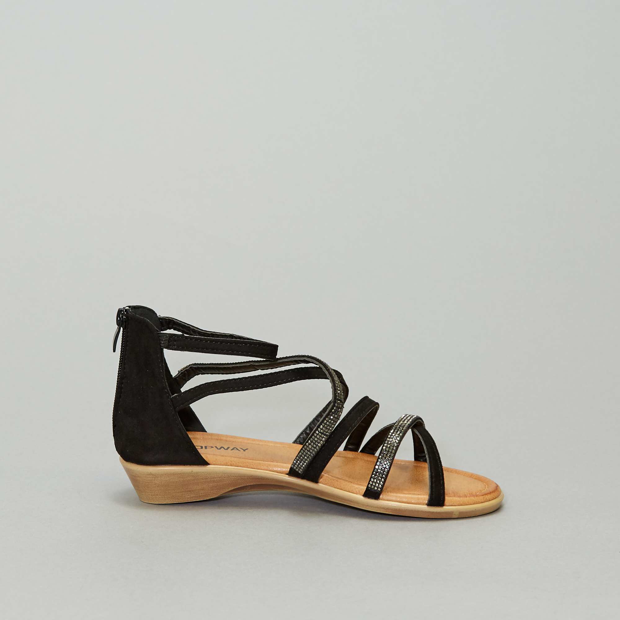 Sandales montantes plates en suédine Femme - noir - Kiabi - 17,00⬠sandales plates montantes