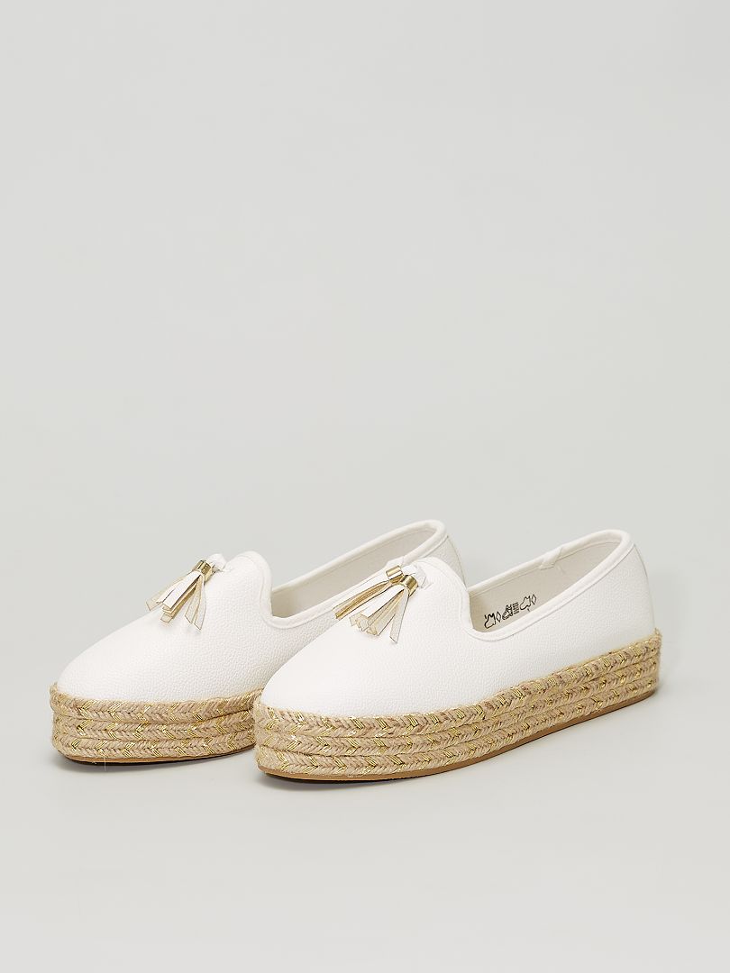 Espadrilles semelles épaisses avec pompons - blanc - Kiabi - 18.00⬠espadrilles semelles epaisses