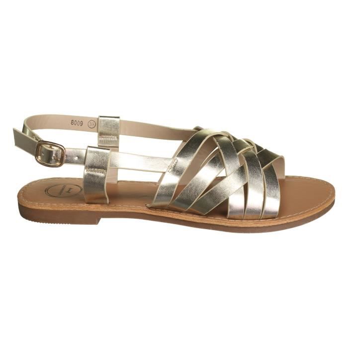 Sandales plates Leader Mode 8009 Gold Jaune - Cdiscount Chaussures leader mode sandales