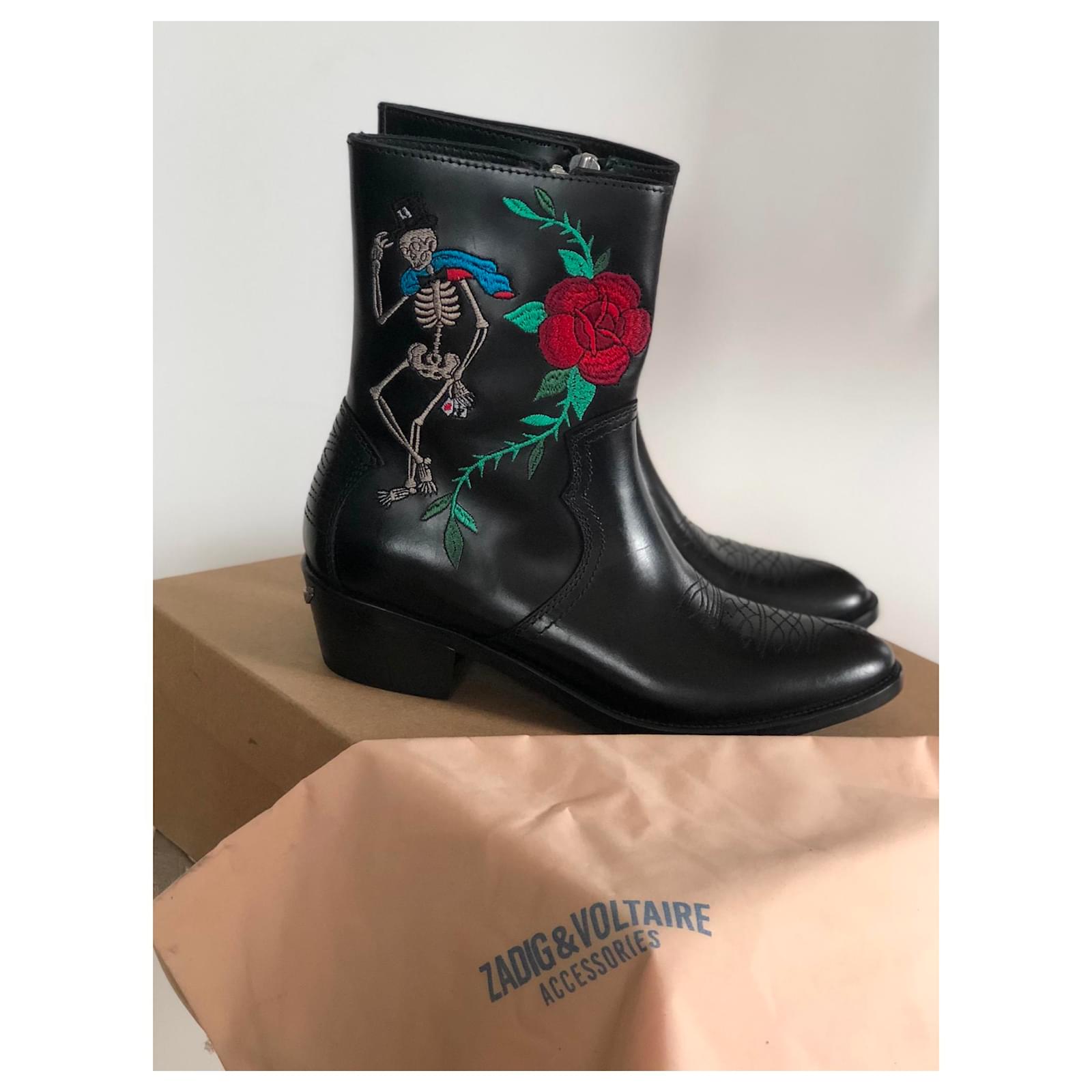 Zadig & Voltaire Ankle Boots Black Leather ref.152879 - Joli Closet zadig et voltaire santiag