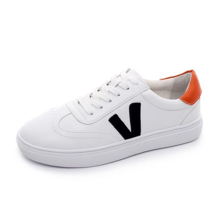 Baskets femme style casual chaussures cuir Vrai toute saison fermeture enfiler lacet Blanc basket casual chic femme