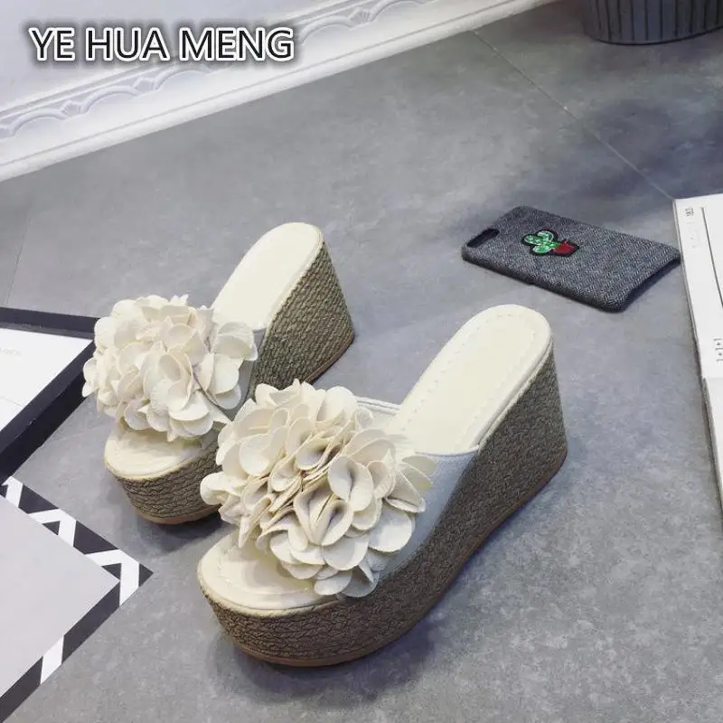 Fleurs femelles En Ãté Sur La Nouvelle Pantoufle Pente Avec Semelles Ãpaisses Chaussures à buffalo chaussures compensées
