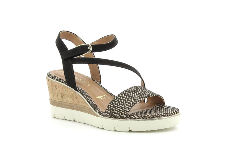 Tamaris 28328 Black | nu-pied compensés noir printemps été chez TROIS PAR 3 tamaris compense