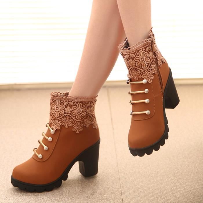 Nouvelle chaussure de dentelle de la mode la ch marron - Cdiscount chaussure haute couture femme