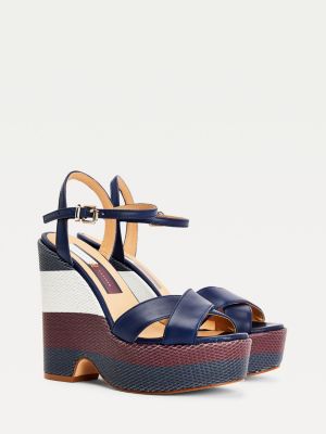 Sandales en raphia à talon compensé | BLEU | Tommy Hilfiger talon compensé tommy hilfiger