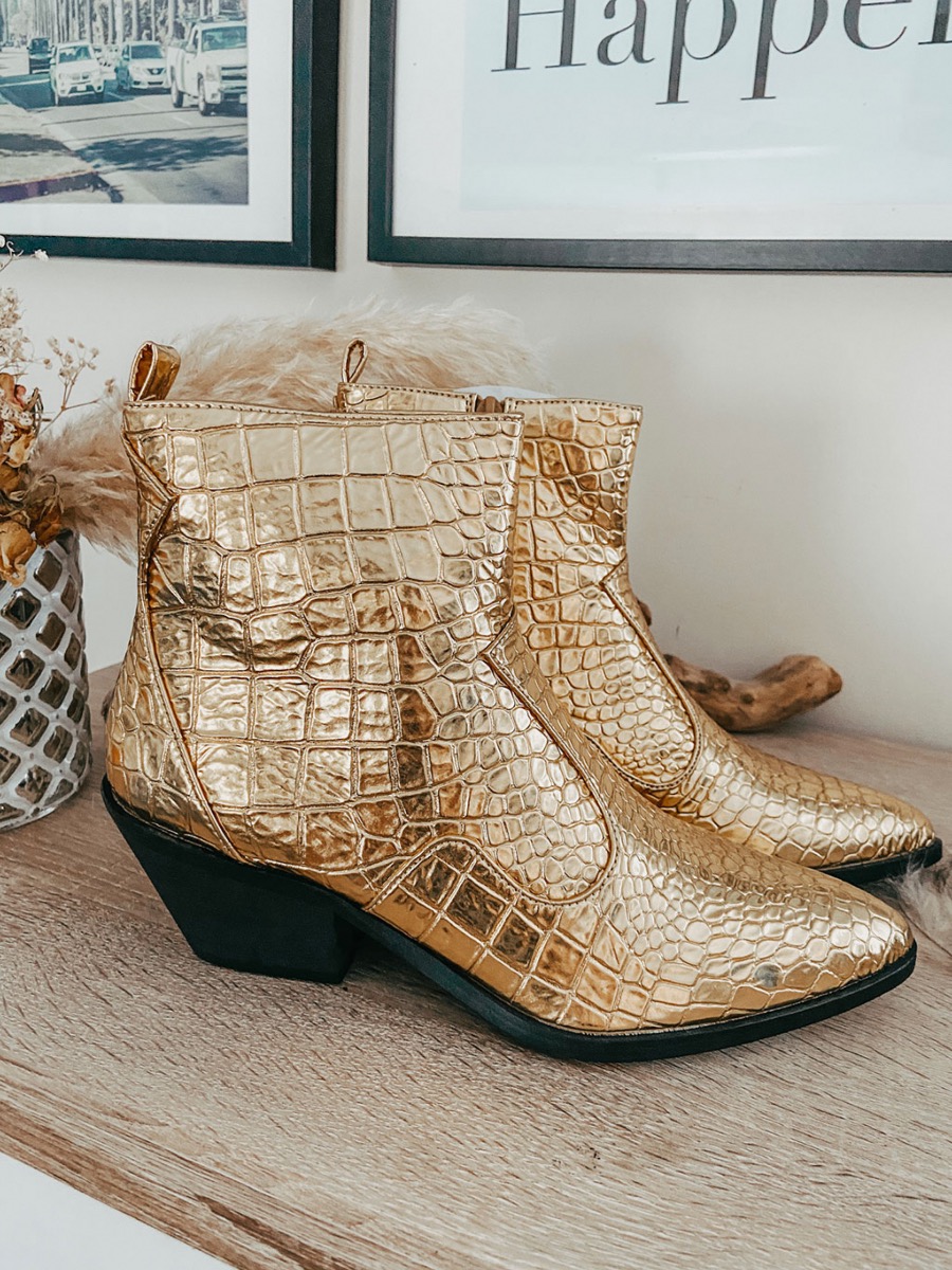 Bottines Santiags Or Effet Croco Vanessa Wu | SAORI Boutique santiag croco