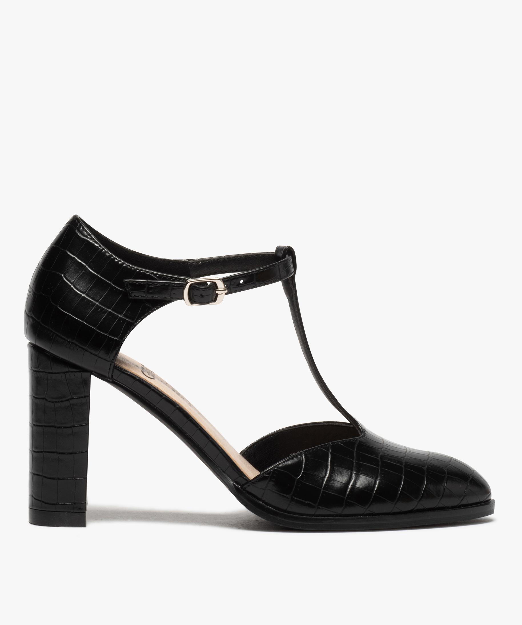 Salomés femme à talon haut dessus imitation croco noir | GEMO chaussures salome talon 5 cm