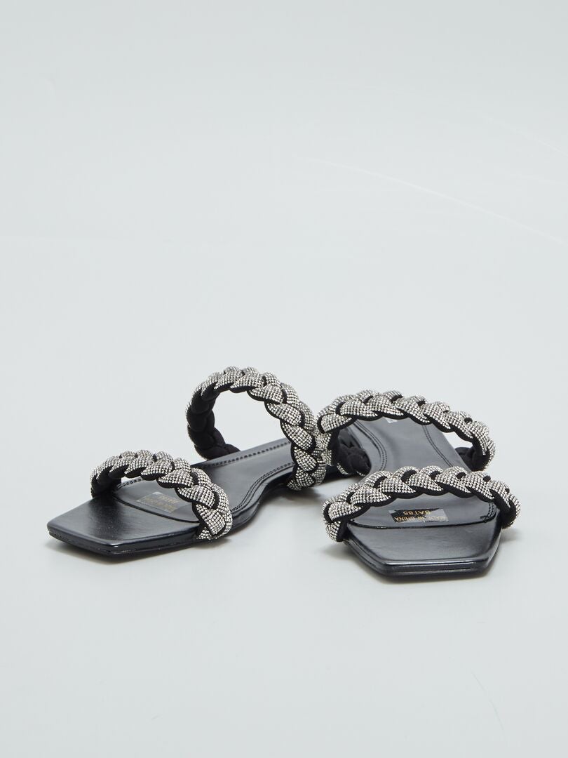 Sandales plates à strass - Noir - Kiabi - 18.00⬠sandales plates strass