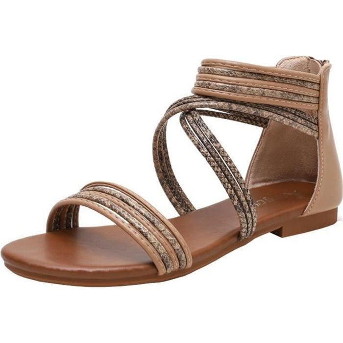 Sandale Femme - MOBIGARLAN - Kaki - Cuir - Fermeture éclair - Confortable Kaki - Cdiscount sandale avec fermeture eclair derriere