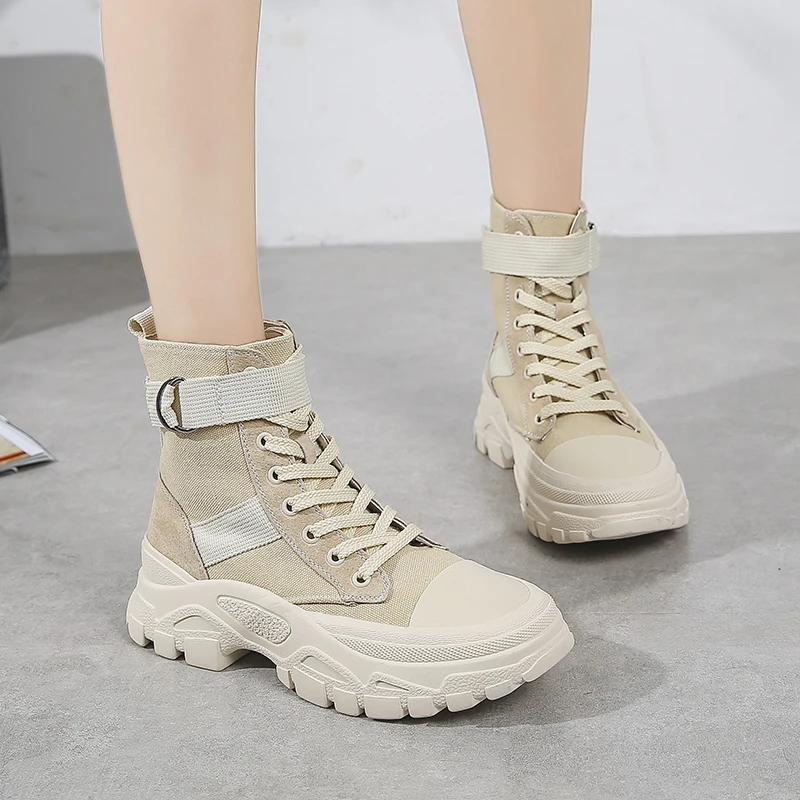 Grande taille automne bottines femmes chaussures femme mode grosses baskets bottes d'hiver tissu botte grosse semelle