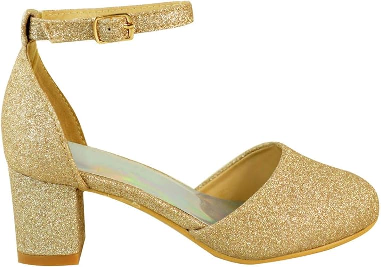 Fashion Thirsty Filles Enfants Femmes Talon Bloc Bas Sandales Strass Chaussures de Soirée talon pour les enfants