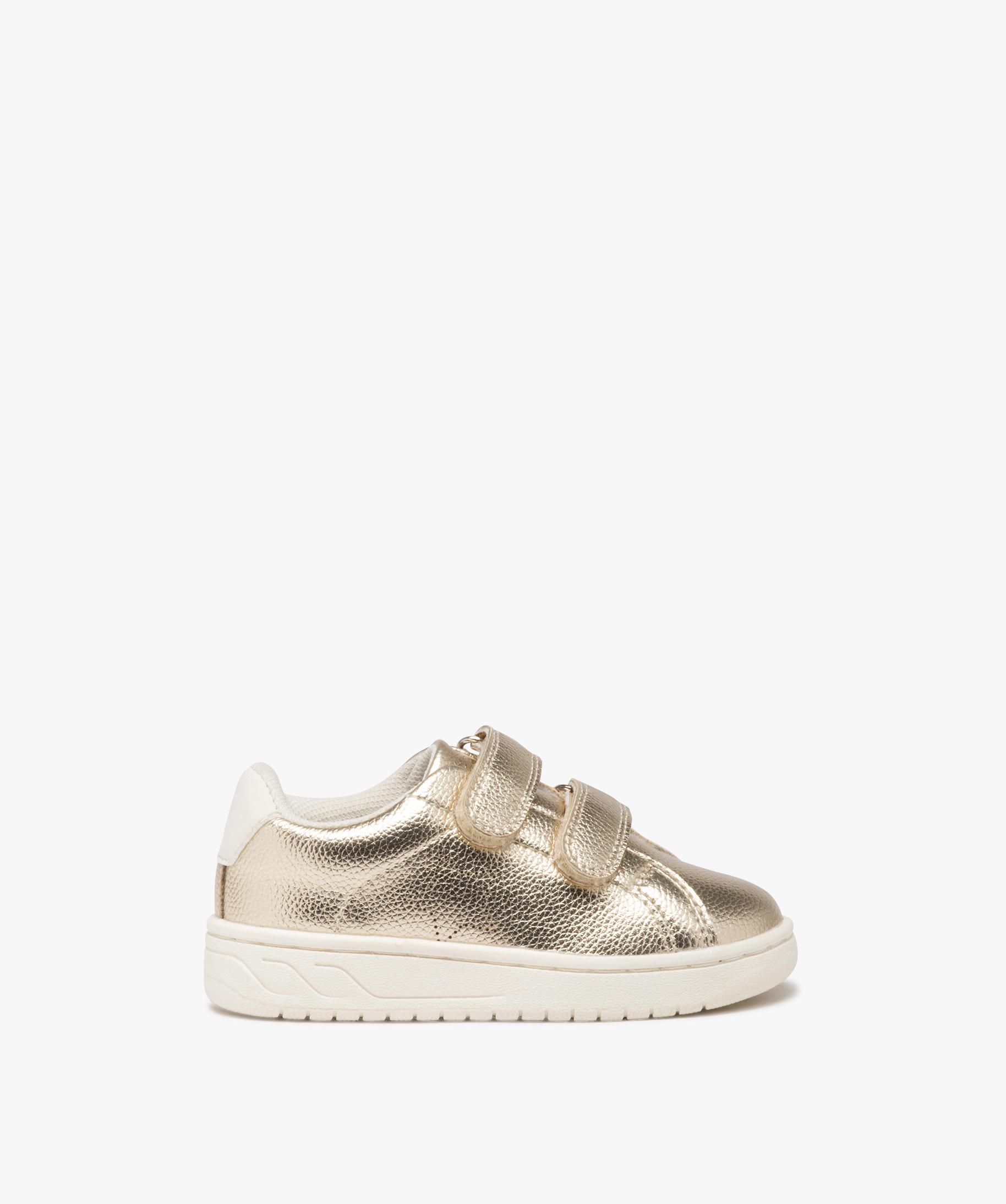 Baskets bébé fille unies effet métallisé à double scratch or | GEMO basket bebe fille scratch