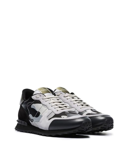 Valentino Leer Garavani Rockrunner Low Top Sneakers in het Grijs valentino slippers heren