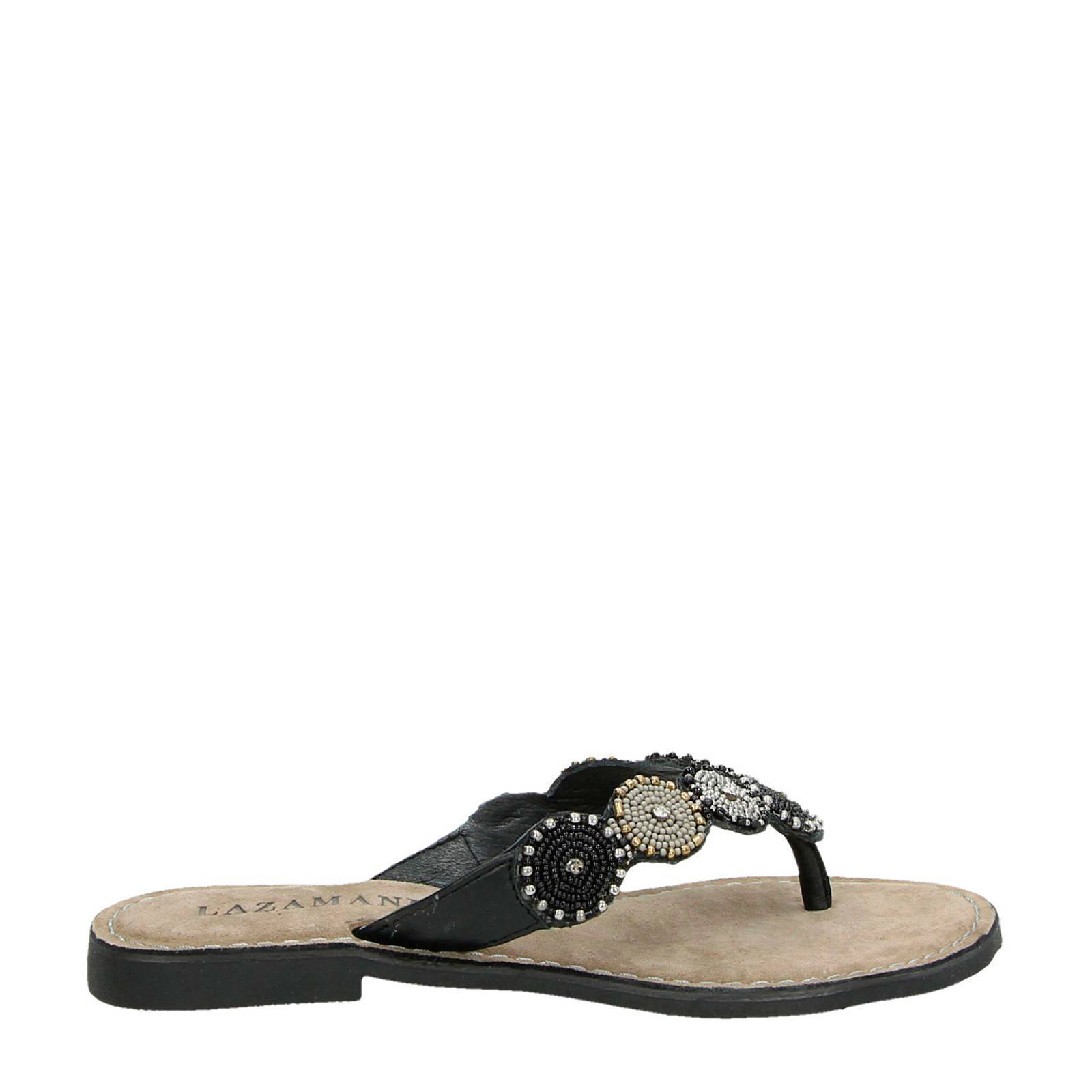 Lazamani leren teenslippers met kralen | wehkamp lazamani slippers zilver