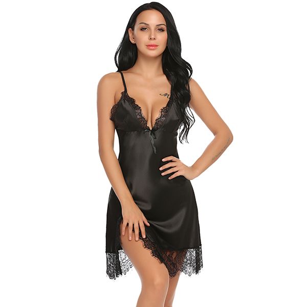 Sexy Lace Satin Sleepwear Nightdress satin nightwear dress