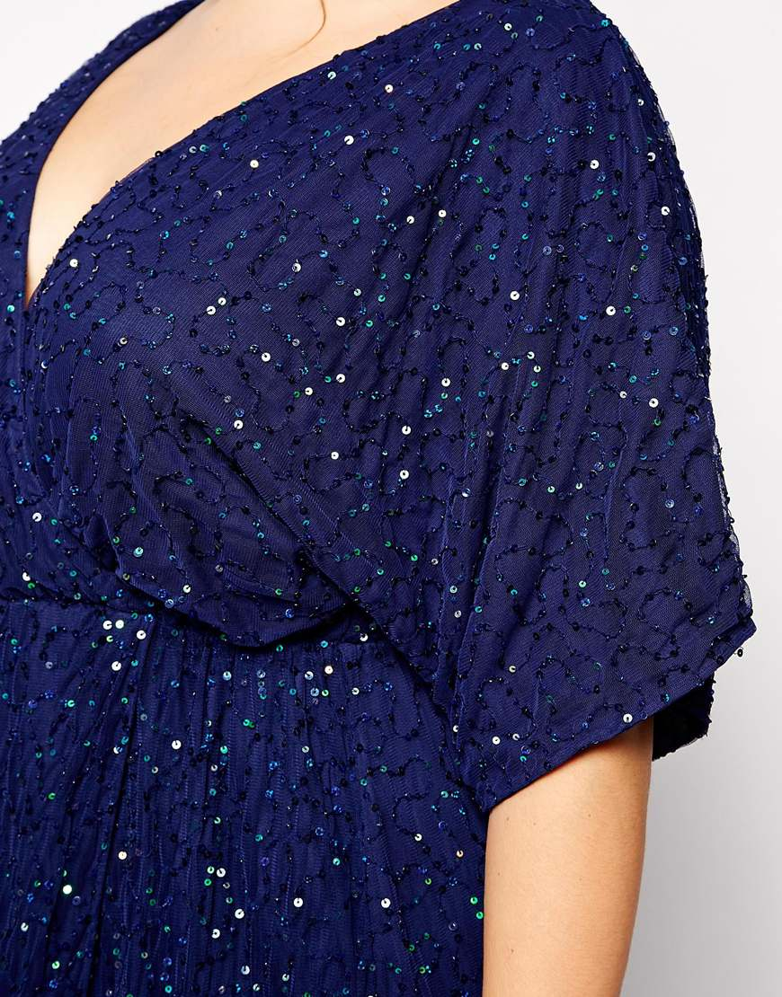 ASOS Sequin Kimono Maxi Dress in Navy asos curve sequin kimono