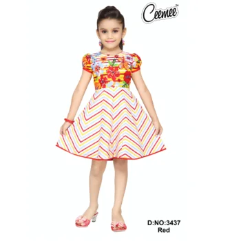 Cute Red Flower Printed Children Frock children frock