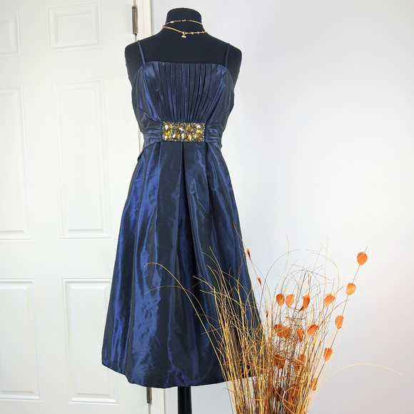 Ny Blue Cocktail Party Midi Dress Sz 12 dark blue cocktail dress