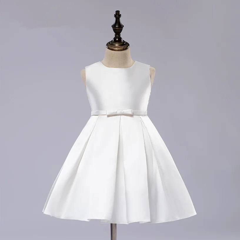 White Satin Girl Party Dress Sleeveless white satin girls dress