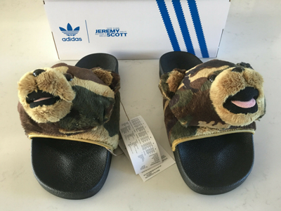 Pre-owned Adidas Originals Adidas X Jeremy Scott Camo Teddy Bear Adilette Slides Size 11 Brand adilette teddy slides
