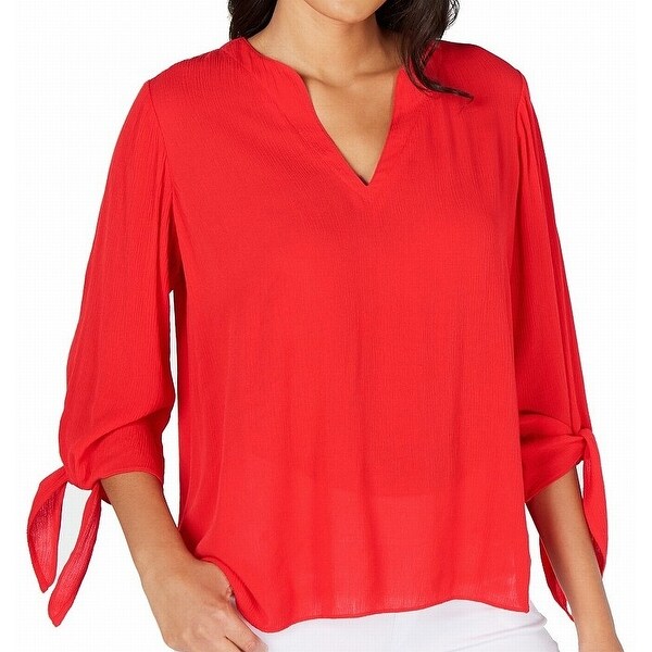 Blouse Apple Red Size XS V-Neck Tie michael kors blouses red